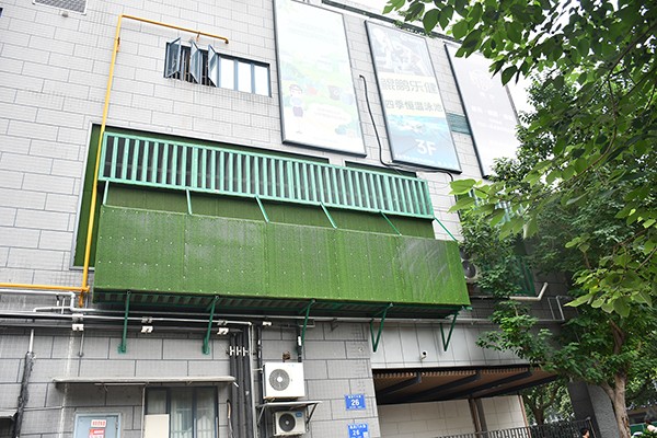 盒马(集庆门大街店)位于南京市集庆门大街 26 号。其1 楼西侧安装有6 组天加空调。空调设备距离临近的华儒国际月子会所直线距离约25m,空调开启时,测得西侧厂界噪声70.6dB(A),空调正上方的四楼阳台上噪声级为71.8dB(A),空调机组外侧面1.0m处噪声级 77.8dB(A)。参照国家《声环境质量标准》 GB3096—2008 规定,空调机组所在区域属于2类声环境功能区对应的环境噪声限值为昼间 60dB(A),夜间 50dB(A)。空调机组晚上 21:00 后关闭,因此噪声治理参考昼间噪声治理标准。