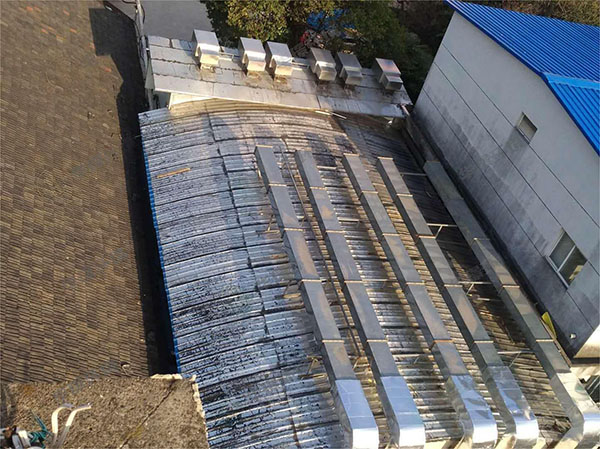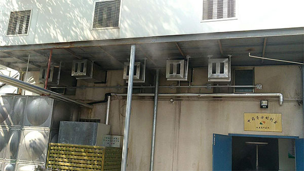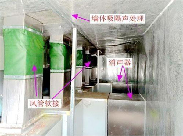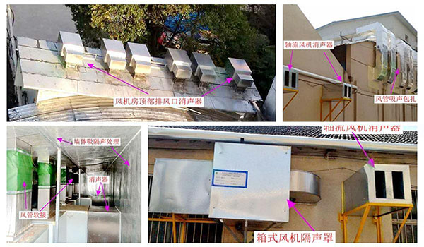 江苏省中医院制剂部位于南京市鼓楼区凤凰西街150号,主要从事中药药剂的生产。厂区主要噪声源分布在风机房及周边及风机房下水泵、轴流风机。现场测得厂界噪声58.8dB(A),实测北侧箱式风机旁1m处噪声值达71.3dB(A);实测风机房内噪声级为82.5dB(A),风机房外噪声级69.6dB(A)。制剂部紧邻居民区,按照国家《声环境质量标准》 GB3096—2008的规定,参考鼓楼区各地块声功能区规划。制剂部所在区域属于II类声环境功能区,对应的环境噪声限值为昼间60 dB(A),夜间50 dB(A)。目前部分厂界噪声昼间超标,夜间制剂部设备不工作。因此对上述噪声源进行综合治理以昼间达到II类声环境功能区标准。